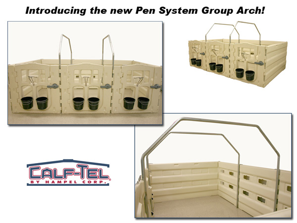Calf-Tel has added an optional Pen System Group Arch to our line of accessories. The new Group Arch allows you to easily convert your Calf-Tel Pen System into group housing.